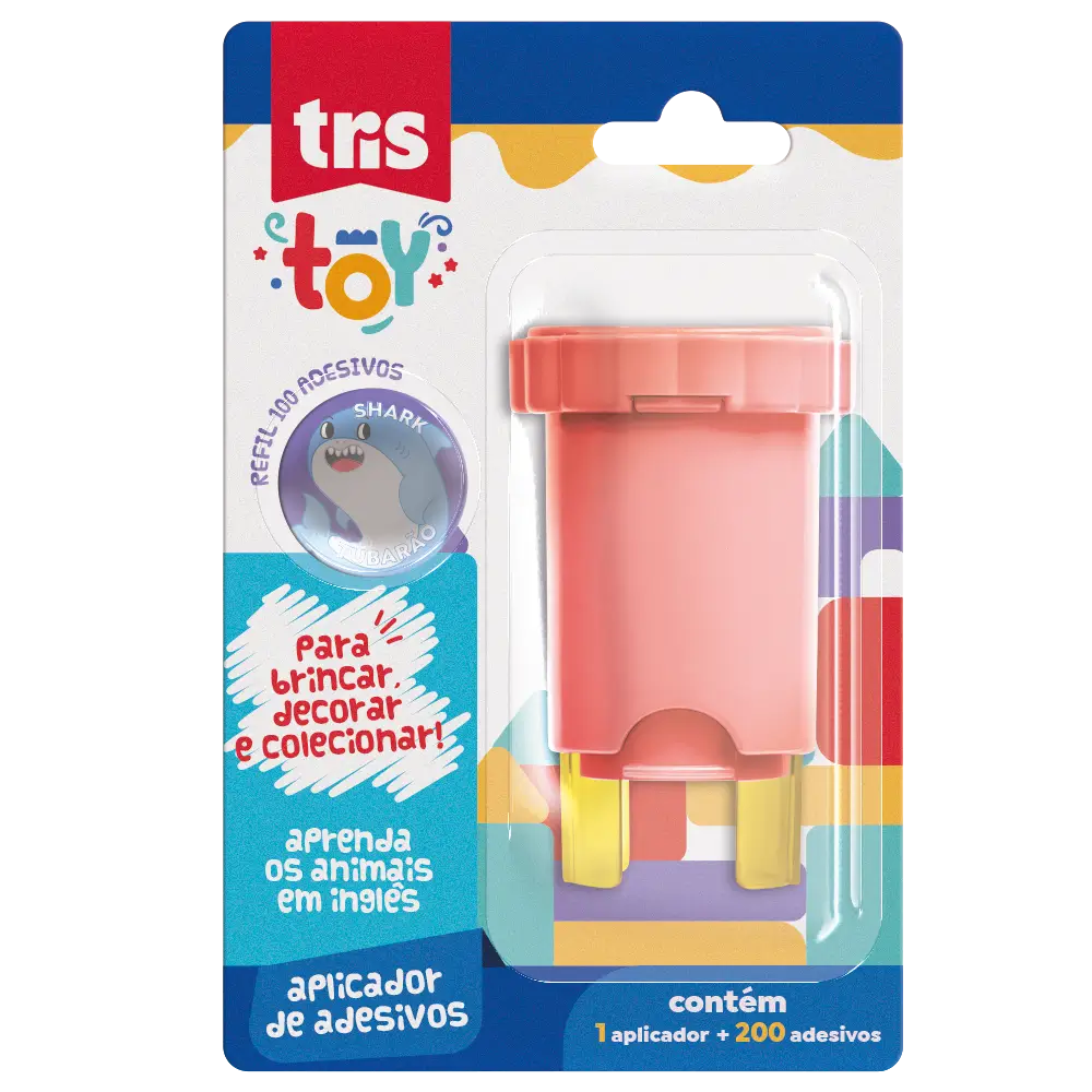 A linha Tris Toy cria memórias especiais através de brincadeiras que exploram incríveis descobertas. Um mundo repleto de alegria, diversão e imaginação. O Aplicador de Adesivos é perfeito para brincar, decorar e colecionar. Com temáticas de bichinhos, são 200 adesivos suoer fofos, especiais para colar em papel, e que auxiliam na aprendizagem dos nomes dos animais, em português e inglês.