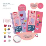 Inspirada nos pingentes e miçangas que estão em alta, a coleção Charm conta com cores alegres e design divertido. É perfeita para customizar e criar memórias especiais com os amigos! O caderno Picky é perfeito para personalizar! Sua capa de silicone, possui encaixes em forma de corações, para pins! São 80 folhas pautadas e decoradas em tamanho A5! Acompanha 6 pins, para um caderno personalizado!
