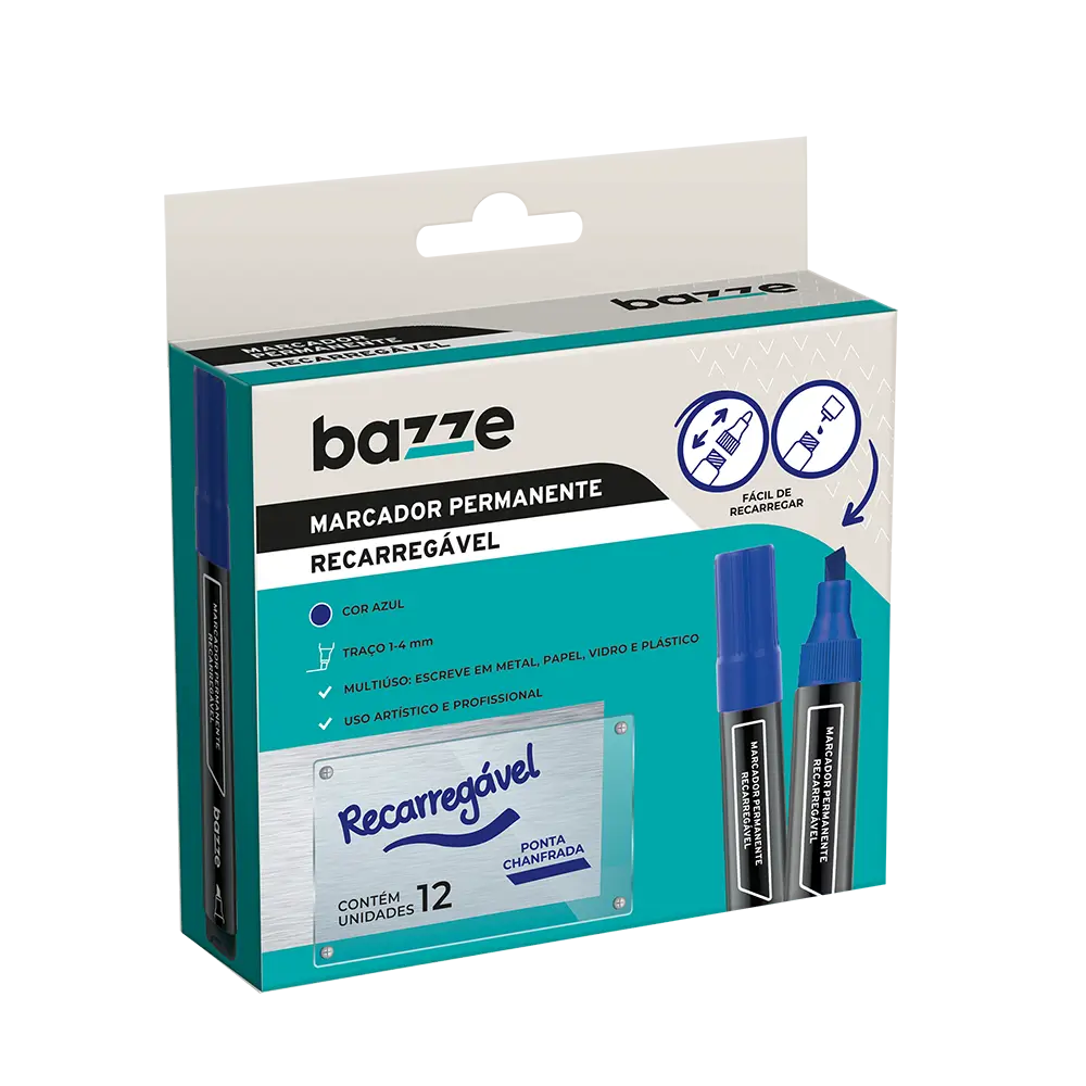 Marcador Permanente Recarregável - Azul - Caixa C/ 12 un - Bazze
