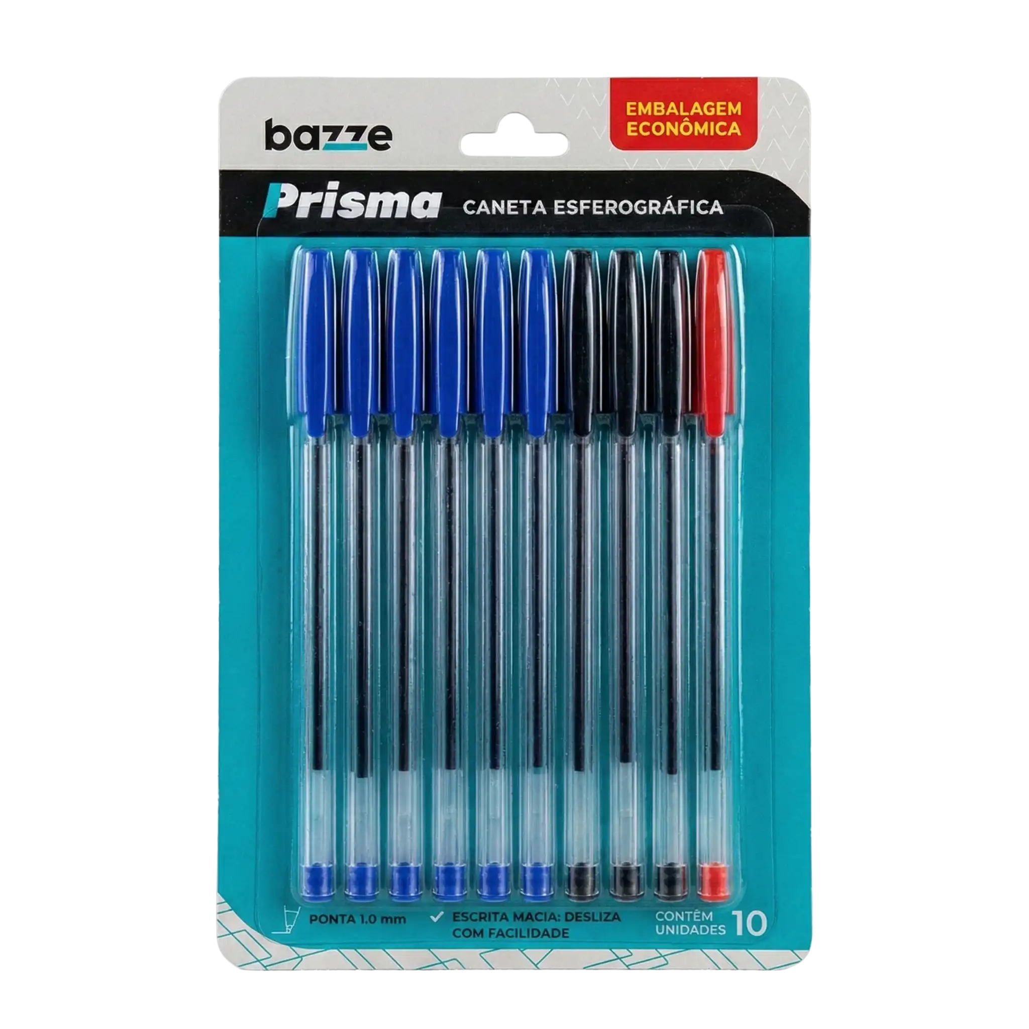Caneta Esferográfica Prisma - 1.0mm - Cores Clássicas - Cartela C/ 10 un- Bazze